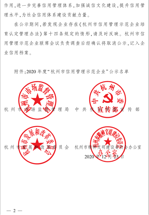 新桃源榮膺“杭州市信用管理示范企業(yè)”稱號